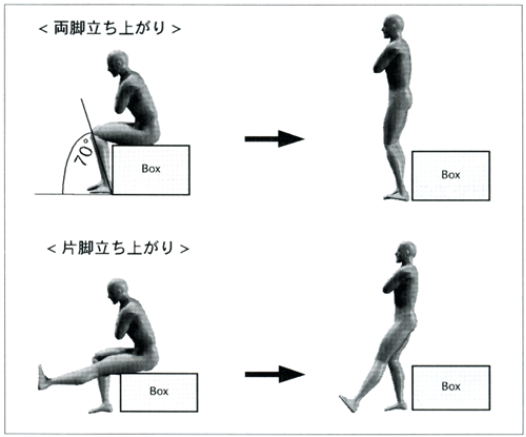 (図1・2:山本利春、村永信吾:現場に役立つコンディショニングの科学 5 下肢筋力が簡便に推定可能な立ち上がり能力の評価http://trainer1985.kir.jp/rensai/conditioning_05.htmlより引用)